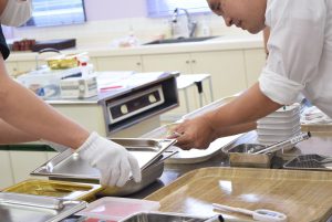 実際にご利用者が食べる食事の準備や盛り付けの演習をする
