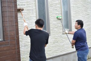 壁は男子勢が高圧スプレーとブラシで清掃していきました。